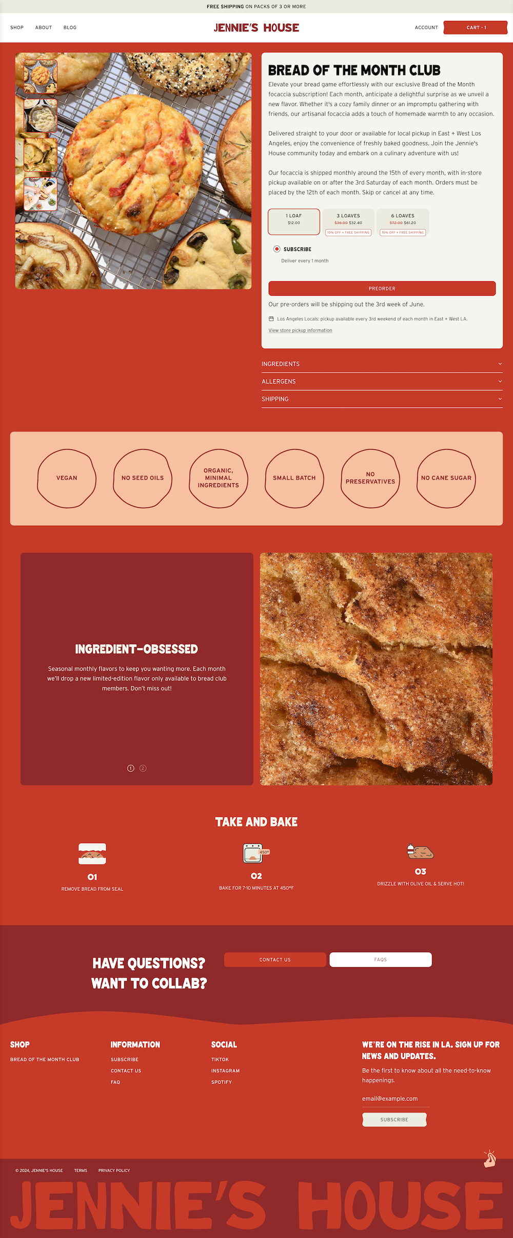 Jennie's House is a new brand with a unique subscription business model. With their Bread of the Month Club, each month you can get a limited-edition seasonal flavor shipped right to your door.